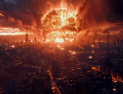 At 0.000002 seconds after detonation, the process is complete and the warhead is beginning to disintegrate from within. Gamma radiation from the nuclear reactions has already radiated up to 400 meters in every direction. A region of space over London the size of a truck is now as hot as the centre of the Sun, and contains the equivalent explosive energy of 900 thousand tons of TNT.