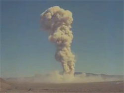 Small Boy was a test of missile silo hardening principles, and to obtain information on the electromagnetic pulse produced by the burst and on weapons effects phenomena. The device was similar to those fired in Nougat Ermine, Chinchilla I/II, and Armadillo. The device diameter was 38cm, the length 39cm and weighed 29kg. The top of the cloud resulting from the detonation reached 5,800m and moved east-northeast. Small Boy was originally planned as the only detonation to be conducted on Operation Sunbeam.